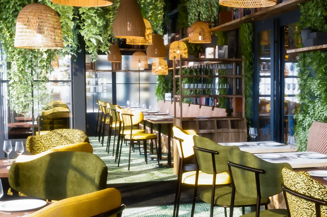 - Concept : cuisine du monde à partager + bar tropical chic
